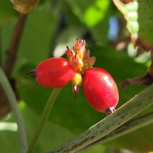花水木の実です。赤い実が生り、葉も赤く色付いてやがて実だけが